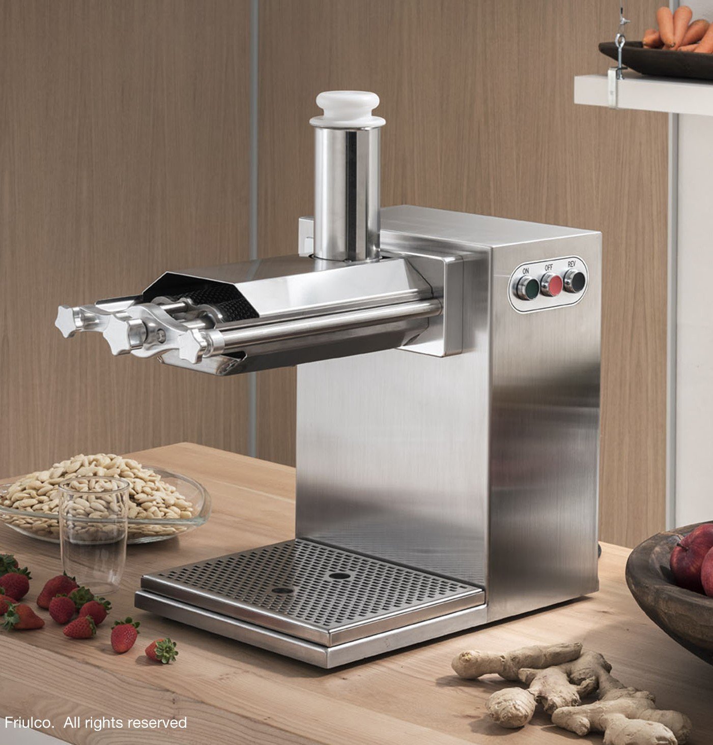 Професионалните фреш машини и сокоизстисквачки на FriulCo са проектирани да извличат максимално количество сок от плодове, зеленчуци, листни зеленчуци и семена, като запазват напълно хранителните вещества.
